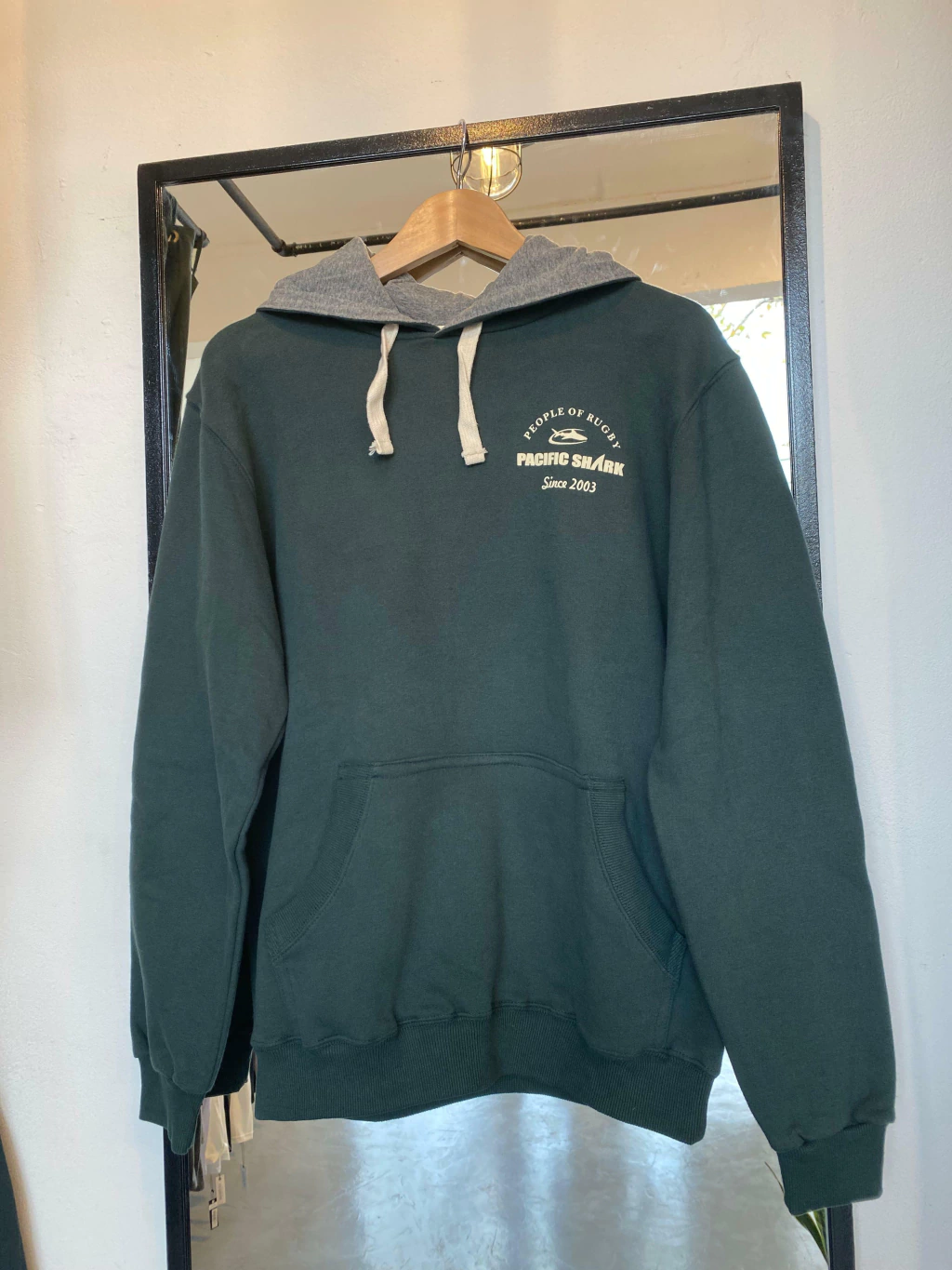 Buzo canguro con capucha, de algodon frizado y estampado en pecho.