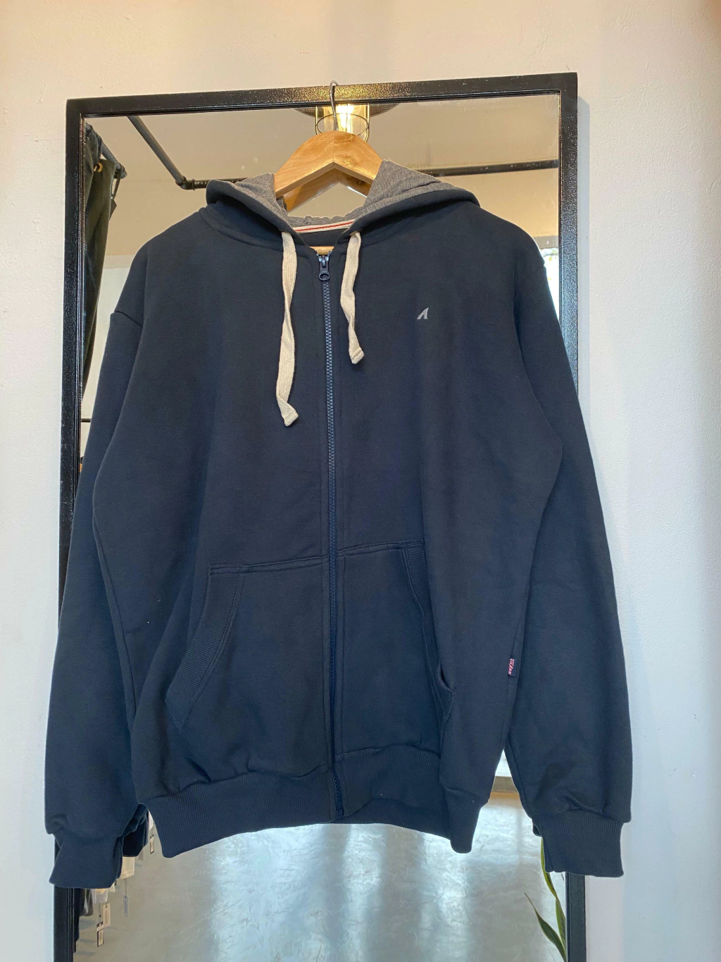 Campera con bolsillos y capucha, de algodon frizado, talles especiales.
